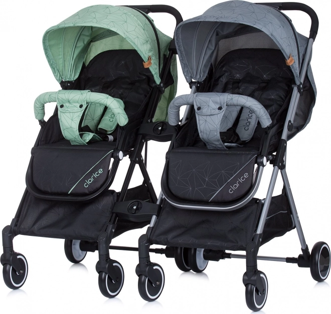 CHIPOLINO Clarice je mestni športni voziček, ki združuje nizko težo z visokim udobjem za otroka in starše. Z eno roko ga zložite v kompakten format, zato ga je enostavno pospraviti v avto ali prenesti po stopnicah. Vzmetena kolesa obvladajo neravnine in zagotavljajo gladko vožnjo.