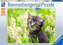 Uživajte v sprostitvi in zabavi s prikupnim motivom mucka sredi cvetočega travnika. Kakovostne sestavljanke RAVENSBURGER s 500 kosi ponujajo natančne izreze, žive barve in gladko prilegajoče se koščke za prijetno sestavljanje in dekoracijo notranjosti.