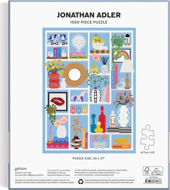 Uživajte v sestavljanju edinstvenega motiva priznanega oblikovalca Jonathana Adlerja. Ta sestavljanka nudi ne samo odlično zabavo, temveč tudi čudovit dekorativni element za vaše notranje prostore.