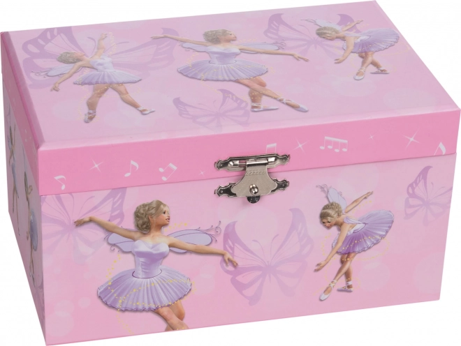 Očarljiva glasbena škatlica za nakit z motivom metuljev vnese v otroško sobo poetično baletno vzdušje. Po odprtju zazveni nežna melodija Labodje jezero in mala baletka se začne vrteti pred svojim ogledalcem – popoln prostor za shranjevanje drobnih zakladov in prvih kosov nakita.