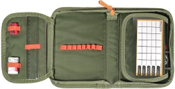 Enonadstropna šolska peresnica z 2 zavihkoma. 25 gumijastih zank za pisala na notranjih zavihkih so prozorne folije, npr. za urnik Mere: 20,5 × 14 × 3,5 cm. Opozorilo: Pisala in drugo šolsko potrebščine niso del pakiranja.