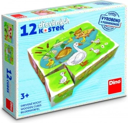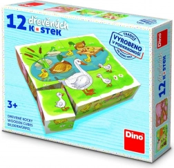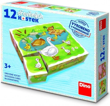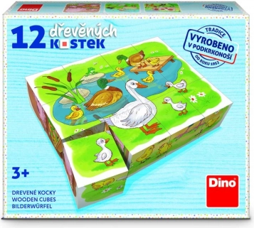 Priljubljene lesene slikovne kocke DINO Na kmetiji prinašajo otrokom veselje tako pri sestavljanju kot pri prosti gradnji. Iz 12 trdnih kock nastanejo vesela kmečka živalca in prizori, ki jih otroci radi odkrivajo. Naraven les je prijeten na dotik, kocke so trpežne in varne.