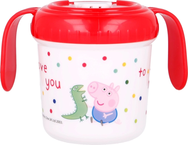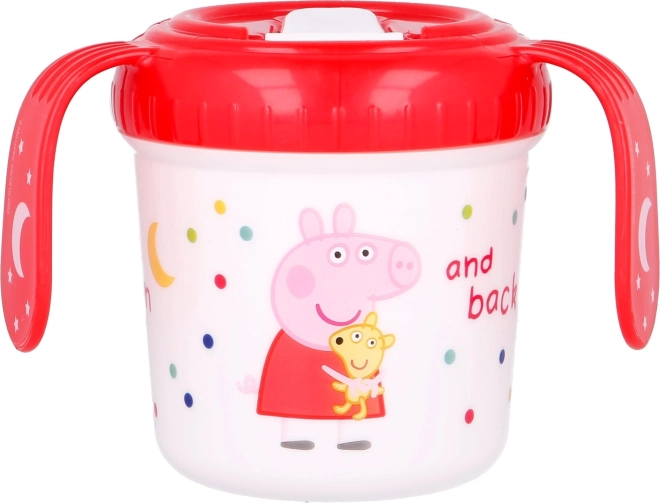Skodelica z ročaji Pujsa Pepa je zasnovana za malčke, ki se učijo piti. Pokrovček z nastavkom preprečuje razlitje pijače, barvite slike z najljubšo risano junakinjo pa naredijo pitje še zabavnejše.