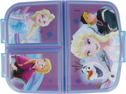 Otroška posodica za malico z motivom iz filma Ledeno kraljestvo ponuja kombinacijo lepega dizajna in praktične funkcionalnosti. Vzdržljiva plastika ščiti vsebino pred udarci, medtem ko trije ločeni predelki omogočajo otrokom organiziranje hrane po lastnih željah. Privlačni motivi Ane, Else in Olafa zagotavljajo, da si bo posoda pridobila srca malih ljubiteljev filma. Idealna je za šolske odmore, izlete in igranje na igrišču. Posodo lahko uporabite tudi za shranjevanje otroških zakladov.