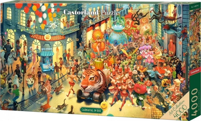 Odkrijte očarljivi svet sambe in mask s prestižno sestavljanko 4000 kosov Karneval v Riu po ilustraciji Waldemara Kazaka. Čakajo vas skrivnostne figure, skriti simboli in izvirni kostumi, ki skupaj ustvarjajo edinstveno, satirično prizorišče. Za lažje sestavljanje je v pakiranju priložena dodatna ilustrirana predloga.