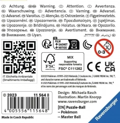 Ravensburger 3D sestavljanka Pokémon Master Ball je fascinantna izkušnja za male in velike ljubitelje Pokémonov. S čudovitim dizajnom, značilnim za svet Pokémonov, ta 54-delna sestavljanka nudi zabavo in spodbuja domišljijo otrok od 6. leta dalje.
