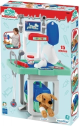 Poskrbite za svoje najljubše plišaste ljubljenčke z vsestransko veterinarsko kliniko ECOIFFIER. Set vključuje negovalno mizo, transportni boks in ljubkega plišastega kužka, ne manjkajo niti zdravniški pripomočki, kot so stetoskop, infuzijska steklenica, termometer in drugi diagnostični instrumenti. Idealna igrača za male veterinarje, ki razvija domišljijo in skrbstvene veščine.