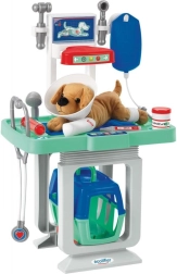 • Celovit set za igro veterinarja – miza, boks, plišasti kuža in instrumenti.