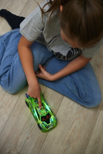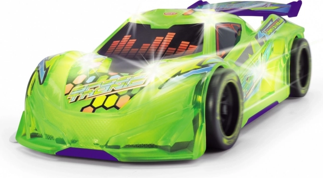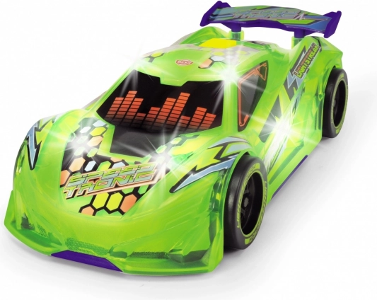 Avto ima svetleče luči in ritmično glasbo, ki spremlja vsako vožnjo.