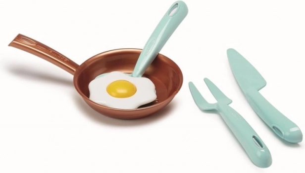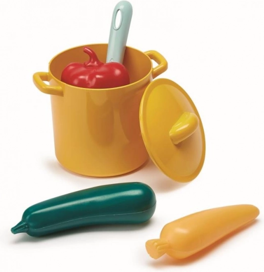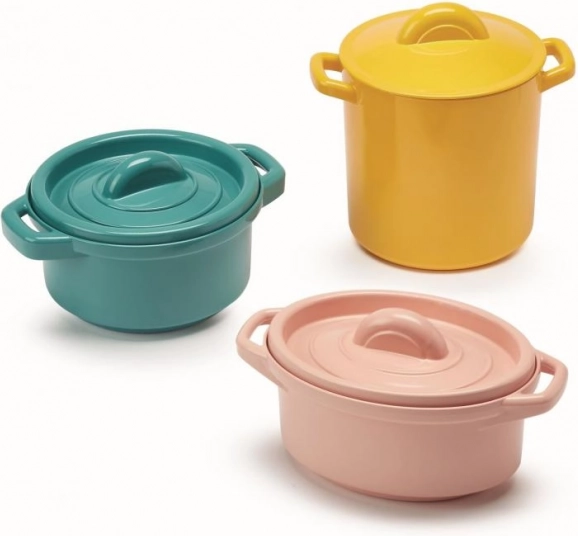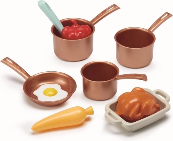 Komplet vsebuje široko paleto živobarvnih loncev in ponv, ki spodbujajo radovednost malih kuharjev.