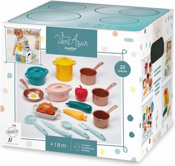Otroci radi posnemajo odrasle in s tem kompletom se lahko igrajo male kuharje. Ta veliki komplet vsebuje vse, kar mali šef potrebuje - od ponv in loncev do barvitih imitacij hrane. Namenjen je razvoju domišljije in sposobnosti igranja vlog. Škatla, ki služi tudi kot štedilnik, zagotavlja priročno shranjevanje in omogoča enostavno upravljanje.