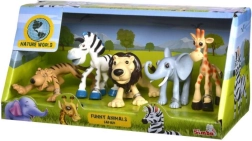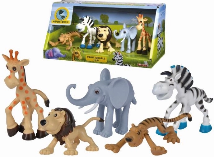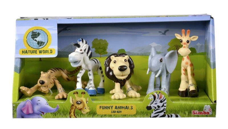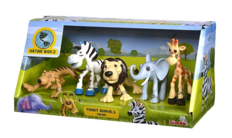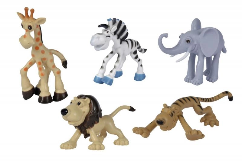 Set 5 safari živalic: tiger, zebra, lev, slon in žirafa. Velikost živalic 9–12 cm.