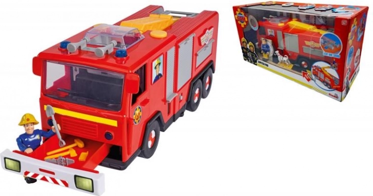 Gasilski avto Jupiter Pro s figurico Sama in psa. 2 različna zvočna učinka, utripajoča luč, izvlečni in vrtljivi lestev. Dolžina 31 cm