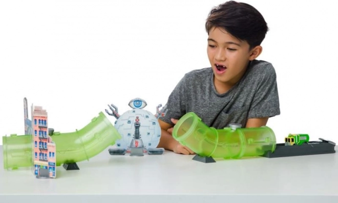 Svetlo zeleni prosojni tuneli dajejo progi edinstven videz in omogočajo ustvarjalne scenarije igre.