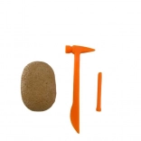 blok z »fosilijo«, deli okostja dinozavra, orodja (običajno: dleto, čopič)