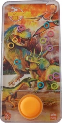 Odkrij čar preproste klasike: vodna igra z dinozavri QUIZY zabava otroke brez zaslonov in baterij. S pritiskom na gumbe ustvariš vodni tok, ki požene obročke – naloga je, da jih natančno usmeriš na zatiče. Odlična izbira za razvoj fine motorike in koordinacije oko–roka.