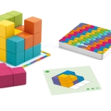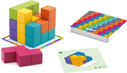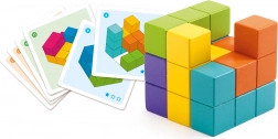 Pakiranje vsebuje trdno podlago za sestavljanje, komplet različno oblikovanih lesenih kock ter 30 logičnih izzivov. Kompaktne dimenzije olajšajo prenašanje, zato boste igro uživali doma, na poti in v šoli. Navduši samostojno igro otrok od 7 let dalje, odlična pa je tudi kot družinski miselni izziv.