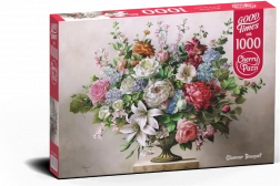 Motiv očarljivega šopka vnaša v prostor nežnost in harmonijo. Odlično za začetnike in izkušene, ki iščejo mirno, a zadovoljivo sestavljanko.