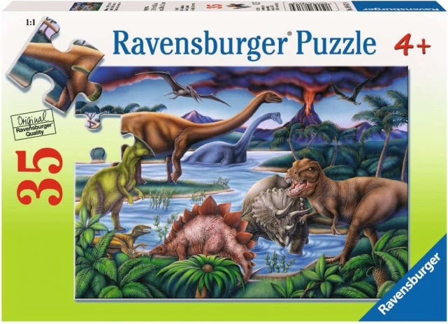 Sestavljanka "Dinosaur Playground" znamke Ravensburger otrokom nudi zabavno in poučno dejavnost. Po sestavitvi prikaže prizor z dinozavri, kot so T-Rex, Stegozaver in Triceratops ob vodni površini, kar bo navdušilo mlade ljubitelje prazgodovine.