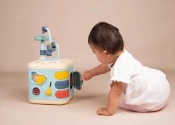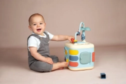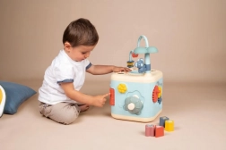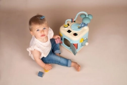 Multifunkcijska kocka LITTLE SMOBY otrokom prinaša ure pametne zabave. Zahvaljujoč raznolikim aktivnostim – od razvrščanja oblik, preko vrtljivih koleščkov in premičnih elementov, do labirinta z kroglicami – naravno razvija koordinacijo oko–roka, domišljijo in osredotočenost. Nežna pastelna barvna paleta je prijetna za oko in nevsiljiva.