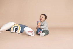 Mehko tekstilno telesce in obraz iz kakovostne plastike vabita k crkljanju, negi ter razvijanju domišljije in fine motorike.