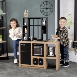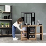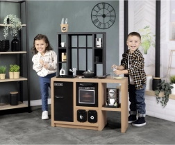 Kuhinјica SMOBY Loft v industrijskem slogu se odlično poda v moderen interier in otrokom nudi varen prostor za posnemanje pravega kuhanja. Vrtljivi gumbi, odpirajoča se vratca in praktični predelki spodbujajo igro vlog, samostojnost in socialno interakcijo.