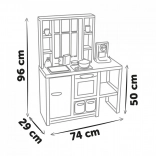 Kuhalna plošča, pečica z okencem, pomivalno korito in hladilnik omogočajo otrokom posnemati resnične dejavnosti, obračati gumbe in odkrivati veselje do kuhanja.