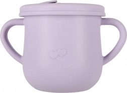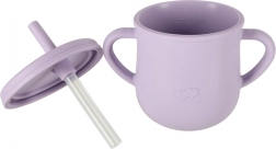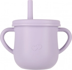 Vadbeni lonček z dvema ročajema, dvema pokrovoma in slamico pomaga otrokom pri samostojnem pitju; notranje merilne oznake olajšajo doziranje.
