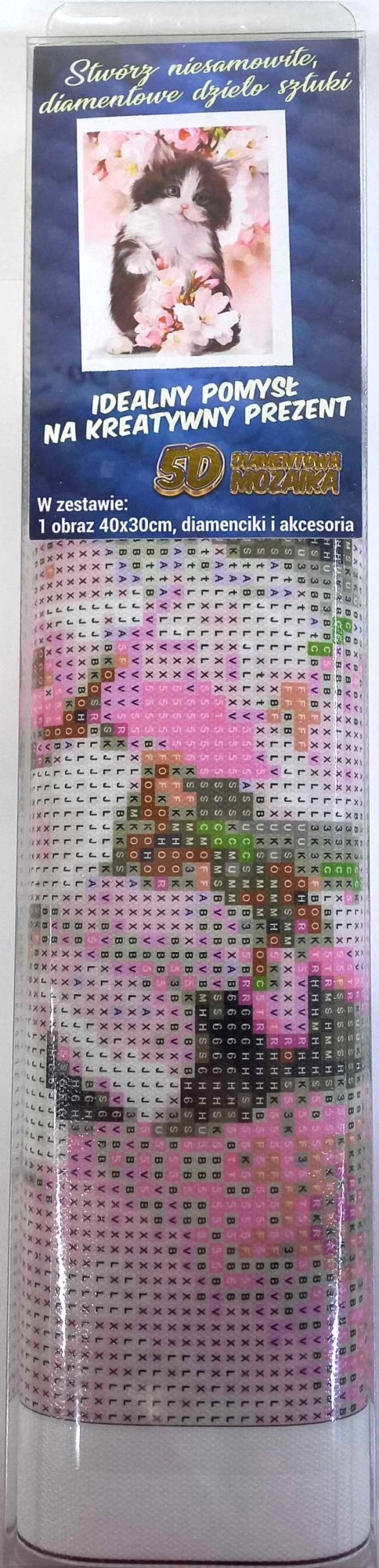 Vsebina pakiranja: platno s predt natisnjeno sliko, pisalo za nanos kamenčkov, posodica za nasipanje kamenčkov, vosek za lepljenje, komplet barvnih kamenčkov.