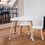 Mizica nudi dovolj prostora za risanje, sestavljanje in prve naloge, stolčki pa so prilagojeni otroški ergonomiji. Zahvaljujoč kompaktnih dimenzij se komplet zlahka postavi tudi v manjše prostore in postane naravno središče otroškega sveta.