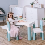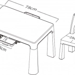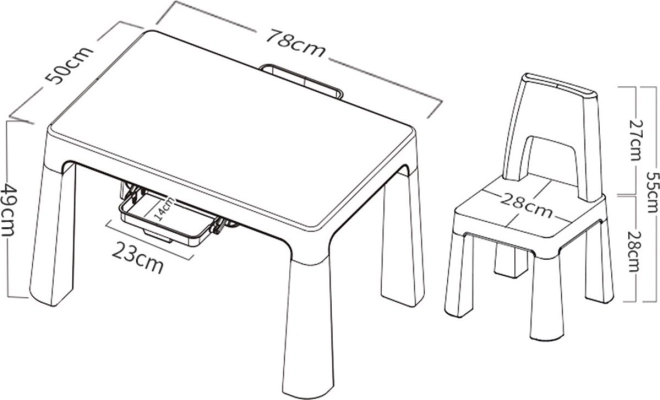 Plastična mizica s stoli Neo ponuja vzdržljivo plastiko in moderen videz, ki se prilega vsakemu otroškemu interierju. Opremljena je z dvema praktičnima predalčkoma z merami 23 x 14 cm, kamor lahko otroci pospravijo drobnarije.