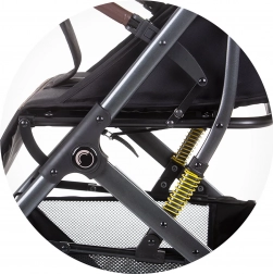 - Varnost: 5-točkovni pasovi, povezana zavora na zadnjih kolesih, varnostni pašček na ročaju