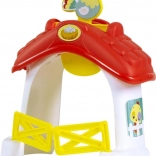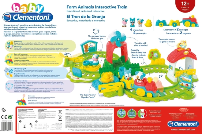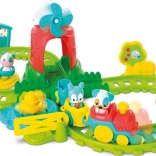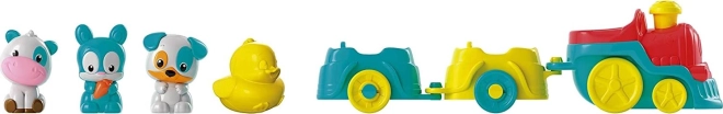 Ta pester in zabaven železniški set spremeni otroško igro v avanturo na kmetiji. Ko vlak vozi, kmetija oživi: roke žerjava se dvigajo, mlin se začne vrteti in živali sprejmejo svojo značilno zvočno vlogo. Ko se rumena vrata zaprejo, račka začne "plavati" okoli ribnika, in vrtiljak se vrti. Odličen način za spodbujanje koordinacije rok in oči ter spodbujanje otrokove domišljije.