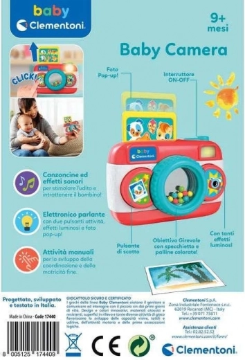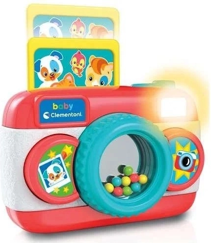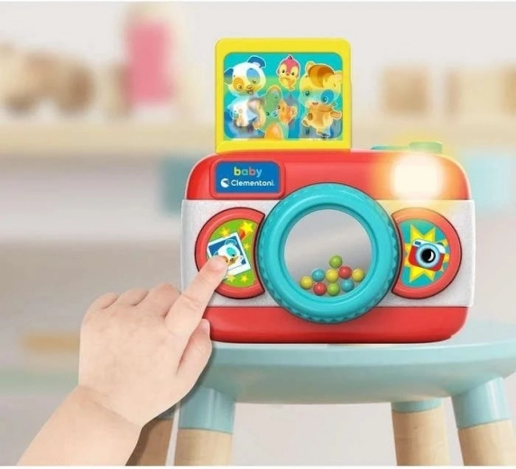 Posebna kombinacija zvočnih in svetlobnih učinkov skupaj z majhnim ogledalcem z barvnimi kroglicami, nameščenimi v objektivu, spodbuja otroško domišljijo in igrivo interakcijo. Ko otrok pritisne na sprožilec, se prikažejo slike živalic, ki širijo njegovo spoznavanje sveta.