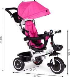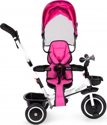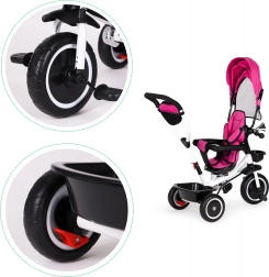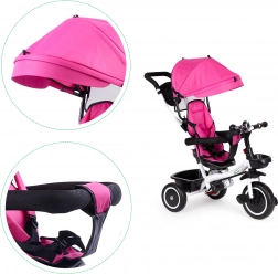 Tricikel ECO TOYS je zasnovan za maksimalno udobje in varnost otrok. Opremljen je z mehkim naslonjalom, 5-točkovnimi varnostnimi pasovi in odstranljivimi varnostnimi ovirami, ki preprečujejo padce. Zložljiva streha nudi zaščito pred soncem in dežjem, medtem ko vrtljiv okvir in sedež omogočata enostavno montažo otrok. Zaradi konstrukcije iz trpežnega jekla je tricikel varen in zanesljiv.