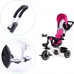 Tricikel je opremljen z varnostnim okvirjem in pettočkovnimi pasovi, ki zagotavljajo, da bo vaš otrok vedno varen.