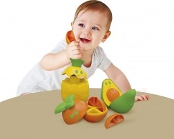 Odkrijte pametno in trajnostno igro z linijo CLEMENTONI BABY. Komplet Zložljivo sadje prinaša tri ljubke plodove – avokado, ananas in pomarančo – ki otroke spodbujajo k odkrivanju, razvrščanju in zlaganju. Vsak element je zasnovan za podporo razvoja logičnega mišljenja, vidno-motorične koordinacije in tipnega zaznavanja.
