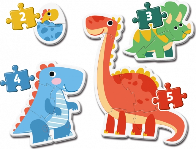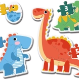 Otroci od 2 let lahko uživajo v sestavljanju prvih puzzle s tematiko dinozavrov. Vsaka puzzle vsebuje različno število kosov - 2, 3, 4 in 5, kar omogoča postopno izboljšanje in pridobivanje novih znanj.