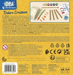 Ta ustvarjalni set CLEMENTONI IDEA Narava prinaša vse, kar otroci potrebujejo za izdelavo čudovitih dekoracij iz slonega testa. Modelirajte, izrezujte, zvijajte, barvajte in okrašujte – domišljija ne pozna meja. Končni izdelki lahko krasijo otroško sobo ali služijo kot prijetna darila.