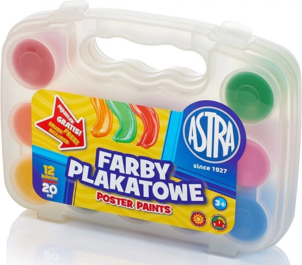 Tempera barve ASTRA nudijo intenzivno prekrivnost, zlahka se mešajo in hitro sušijo. Vsaka barva je shranjena v trpežnem plastičnem lončku z navojnim pokrovčkom, ki preprečuje izsuševanje in omogoča enostavno večkratno uporabo. Praktičen plastičen kovček omogoča varno prenašanje in shranjevanje celotnega seta.