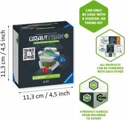 Odkrijte nove možnosti gradnje z dodatkom GraviTrax PRO Razdelilnik. Zahvaljujoč pametnemu mehanizmu se kroglice razvejajo v več smeri, zato lahko načrtujete bolj dinamične in nepredvidljive proge. Idealno za eksperimentiranje z gravitacijskimi principi, fiziko in prostorsko geometrijo.