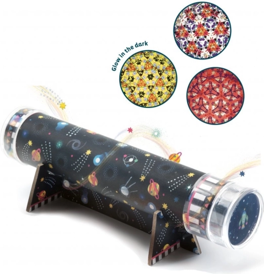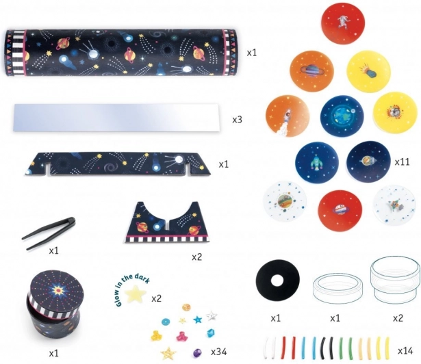 S kreativnim kompletom DIY vesoljski kalejdoskop si otroci sami sestavijo svoj kalejdoskop in odkrijejo čar optičnih iluzij. Zahvaljujoč zamenljivim ploščicam z vesoljskimi motivi imajo vsakič novo vizualno doživetje. Komplet razvija ustvarjalnost, potrpežljivost in prinaša veselje ob odkrivanju optičnih učinkov.