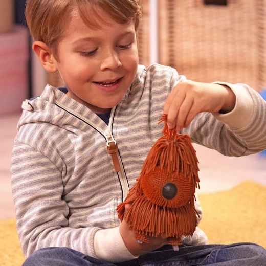 Prisrčni interaktivni kužek Jiggly se odzove na pritisk gumba na glavi: laja, hodi, ziba z glavo in ziba z telesom in repom v ritmu melodij. Bateriji 2× AA sta priloženi (preizkusni). Na voljo v barvah roza, vijolična, modra, rjava.