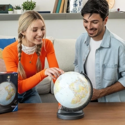 Ta vrhunski 3D puzzle globus s premerom 22 cm je sestavljen iz 540 trdnih, rahlo ukrivljenih plastičnih koščkov, ki se brezhibno prilegajo. Po sestavi tvorijo gladko in trdno kroglo, postavljeno na stabilno osnovo z označenimi zemljepisnimi širinami. Zahvaljujoč vgrajenemu LED modulu globus učinkovito sveti in postane dekoracija ter izobraževalni pripomoček.