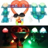 Gibanje kroglic aktivira svetlobo in skupaj z osvetljenimi deli ustvari privlačno svetlobno predstavo, ki otroke motivira k nadaljnjemu gradjenju in eksperimentiranju.