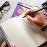 Elastično zapiranje in zanka za svinčnik poskrbita, da bo vse skupaj na mestu in pripravljeno, kadarkoli potrebujete pisati.