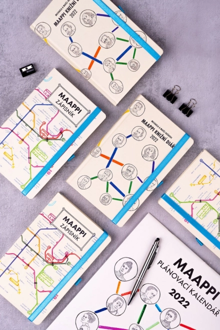 Maappi je dobrodelni projekt, katerega glavni obraz je sedemnajstletni Matěj Hošek, ki se od otroštva spopada s hudo obliko Aspergerjevega sindroma. Starši dolgo niso vedeli, kako bi mu pomagali, dokler mu niso nekega dne v roke dali zemljevida praškega javnega prevoza. Od takrat Matěj riše svoje edinstvene načrte podzemne železnice. Najboljša dela mladega oblikovalca boste našli na straneh beležnice, z njenim nakupom pa prispevate k podpori projektov, ki izboljšujejo življenje ljudi s hendikepom.