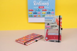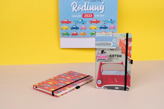 Elegantna črtasta beležnica z motivom Krtek in avtomobilček v trdih platnicah je idealna za vsakodnevne zapiske, dnevnik in službene opombe. Ponuja praktično zapiranje z elastiko, zanko za svinčnik in notranji žep za drobnarije. V notranjosti je 172 pikčastih strani na rumenem papirju za pregledno in ustvarjalno pisanje.