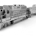 Vsak del je natančno izrezan in graviran za maksimalno vernost lokomotive in vagonov – rezultat je impresiven kovinski model.