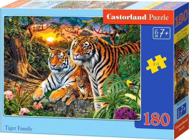 Otroška sestavljanka Tiger Family s 180 kosi in dimenzijami 32 × 23 cm. Kakovostna izdelava, žive barve, idealno za otroke 6–8 let. Zabava in razvoj veščin.